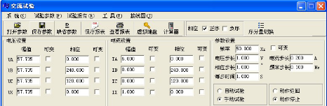 选择某一相电压或某一相电流为变量,选择自动或手动试验方式变化,直到继电器动作。当电压大于125V,电流大于30A时,电压可采用线电压输出,如UAB、